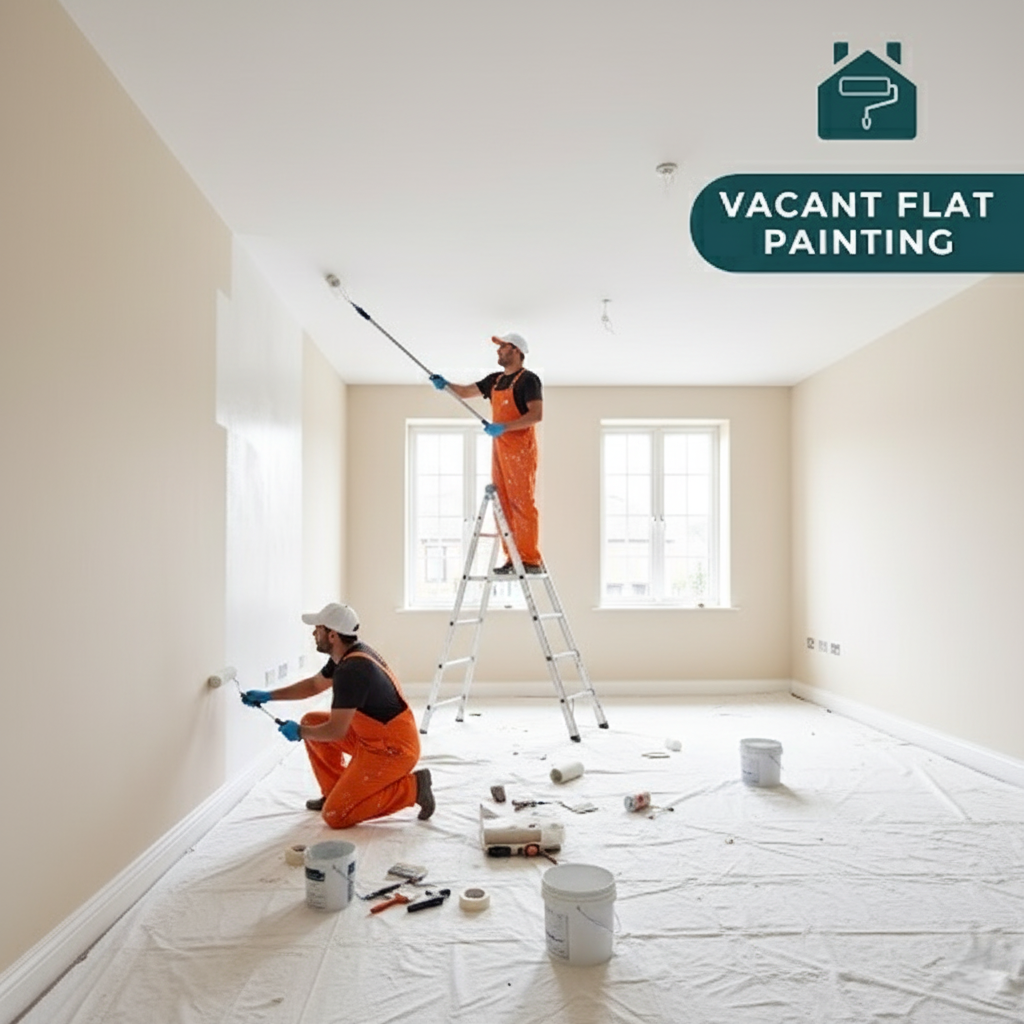 Cost-effective painting package for vacant flats with minimal prep for quick handover-ready finish. Ideal for rentals and resale refresh.